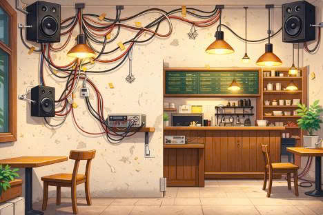 Dưới đây là những lỗi phổ biến nhất khi lắp đặt hệ thống nghe nhạc cơ bản gồm loa + amply cho quán cà phê, kèm cách tránh đơn giản, dễ áp dụng.