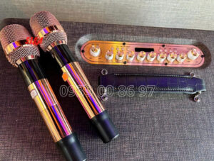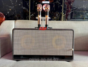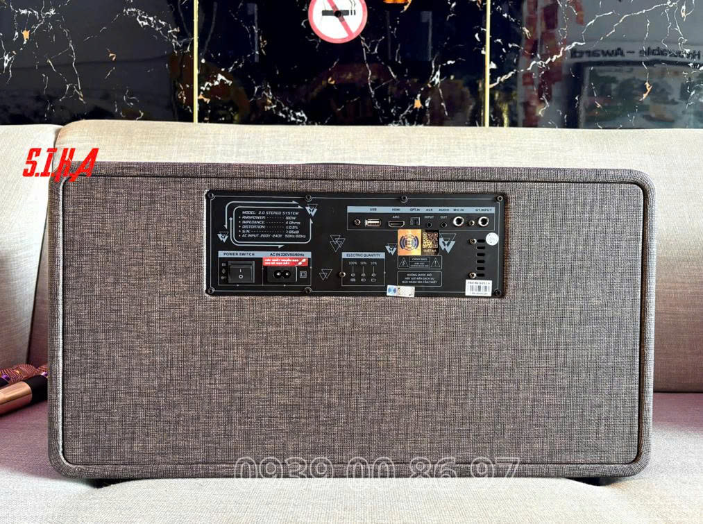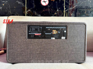 Trên mặt sau có cổng USB để phát nhạc. Bên cạnh đó là MIC IN (6.35mm) cho ai muốn dùng micro có dây, và GT.INPUT (6.35mm) để cắm guitar – rất tiện cho các buổi chơi nhạc nhẹ, acoustic tại nhà. Đây là kiểu bố trí cổng “đủ dùng – dễ dùng”, hợp cả karaoke lẫn nghe nhạc giải trí.